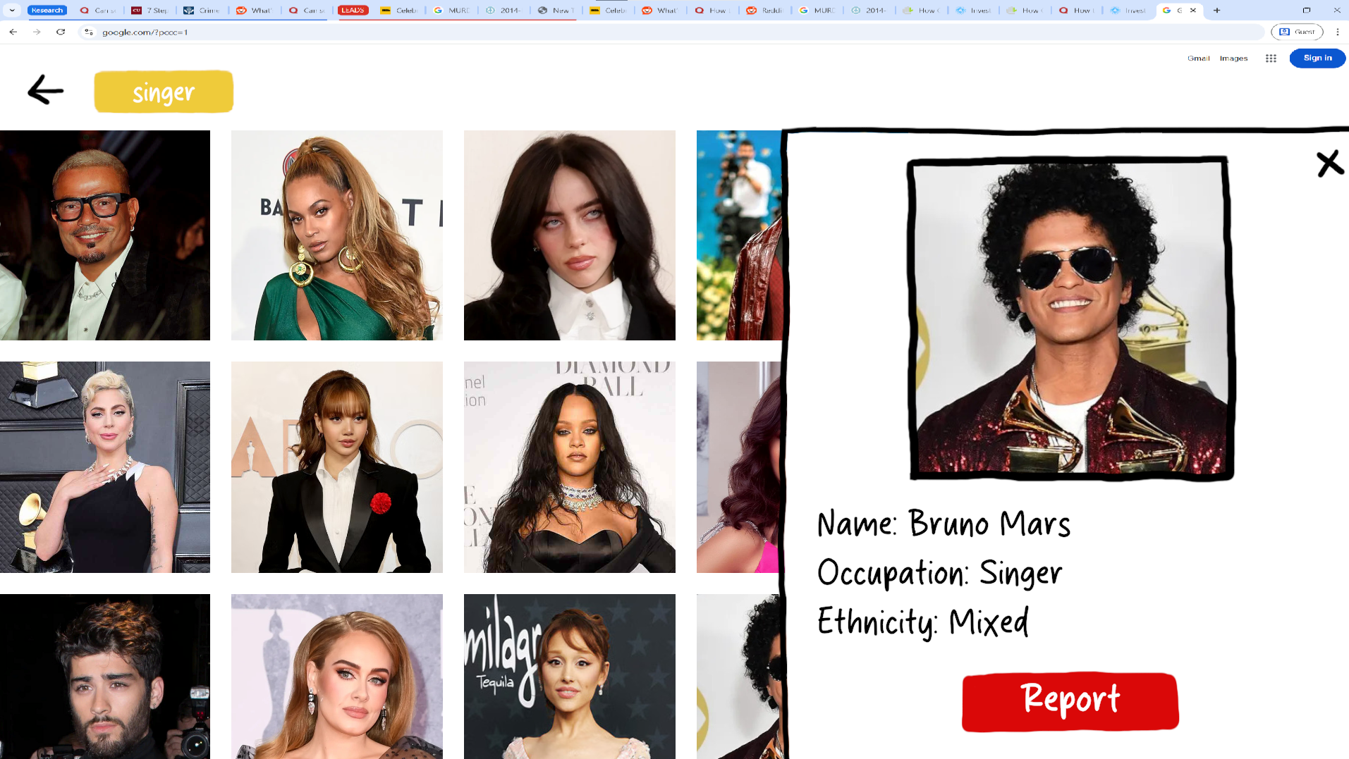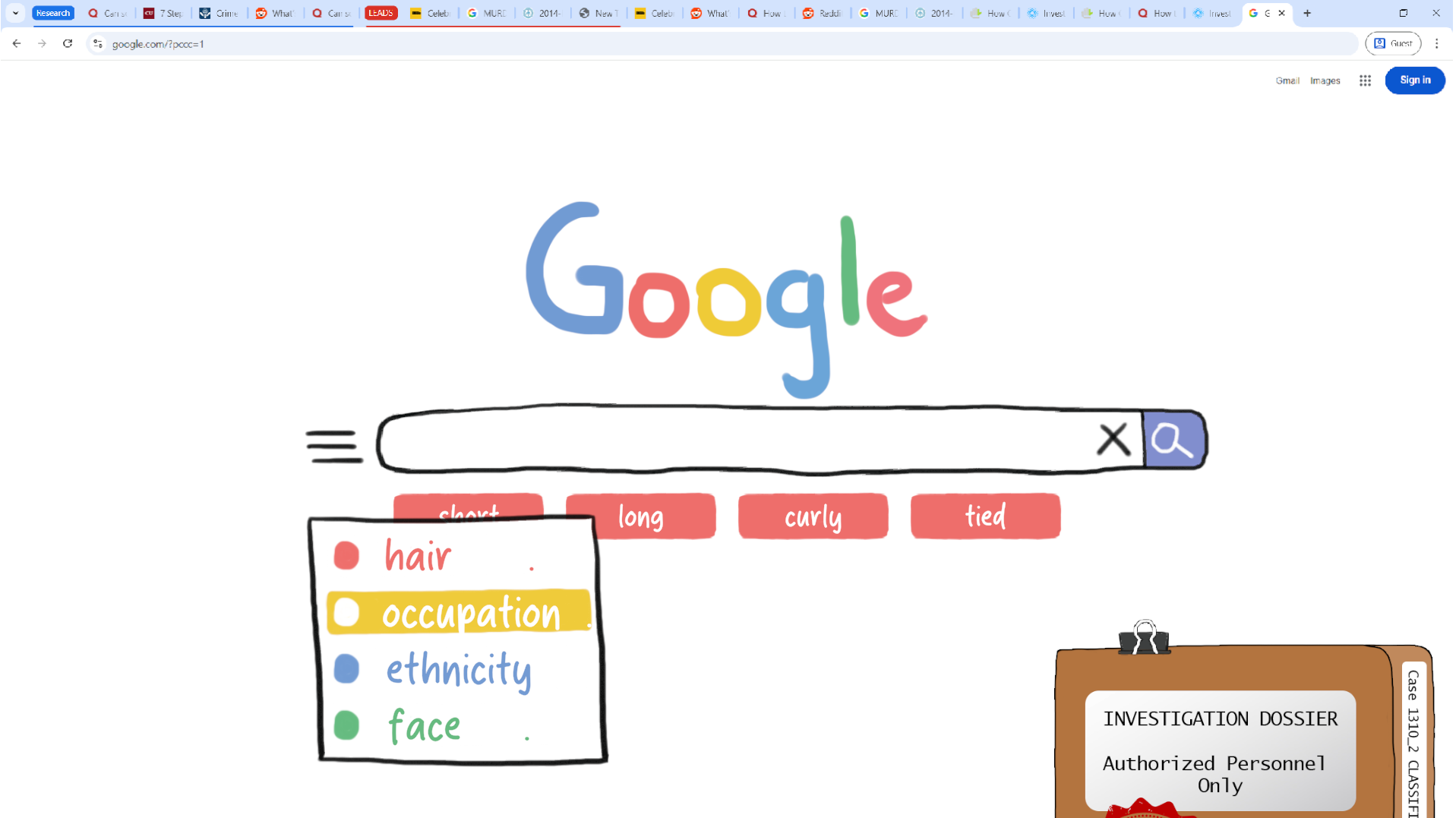 Using a search-style interface, you’ll choose keywords related to the suspect’s appearance and background. Each search filters down a pool of celebrity suspects. As you narrow your results, you’ll build a shortlist of possible culprits.